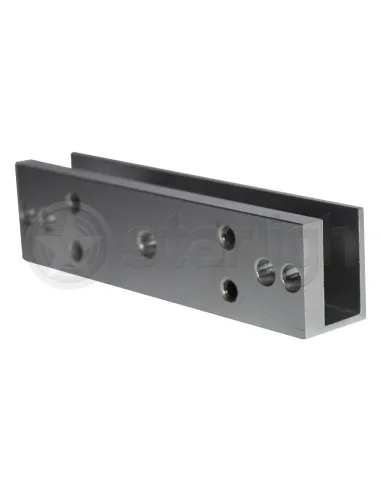 Herraje para cerradura electromagnética en forma de U de aluminio anodizado. Se utiliza principalmente en puertas de vidrio.