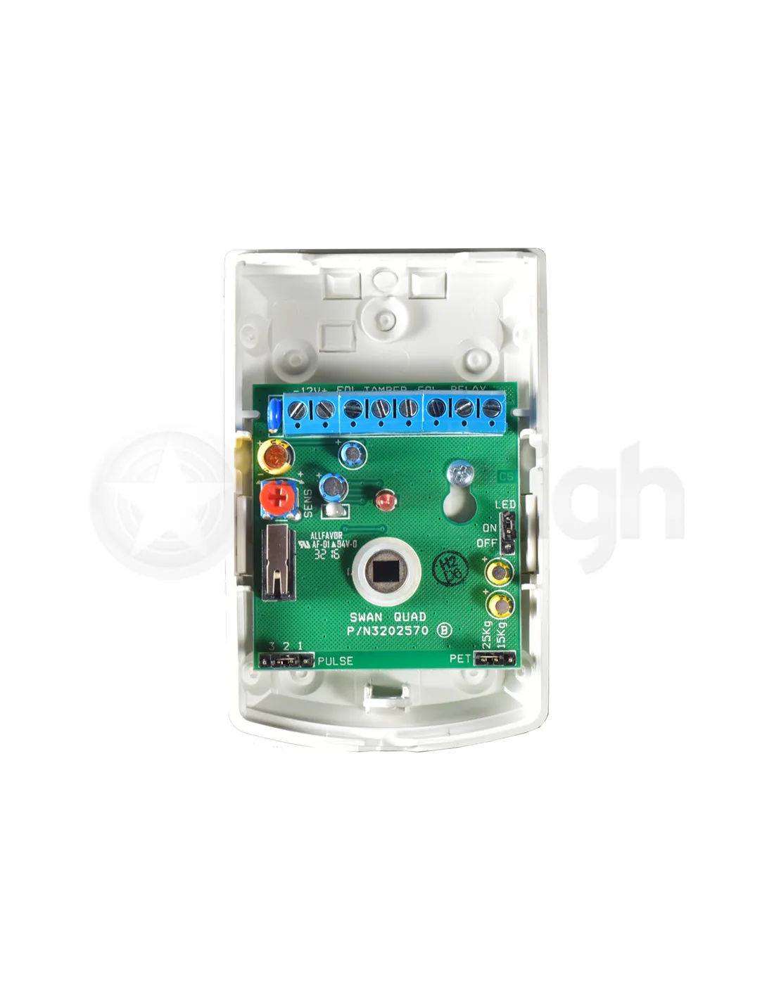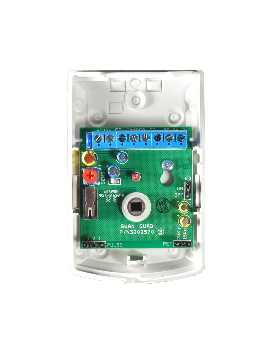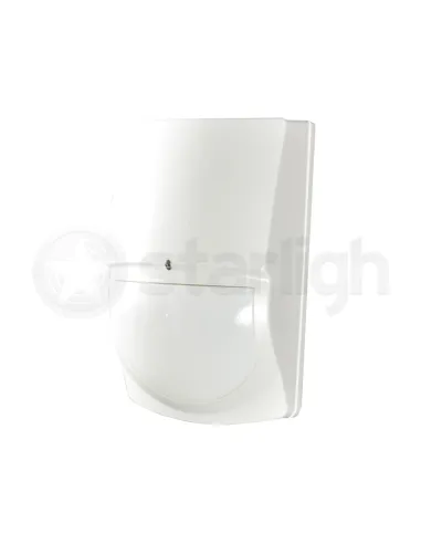 Detector de movimiento infrarrojo para uso interior y convencional. Posee inmunidad a mascotas de hasta 25kg. Diseñado con altas prestaciones como compensación de temperatura y método de detección con 4 elementos PIR, esto evita los falsos disparos en aplicaciones domiciliarias.